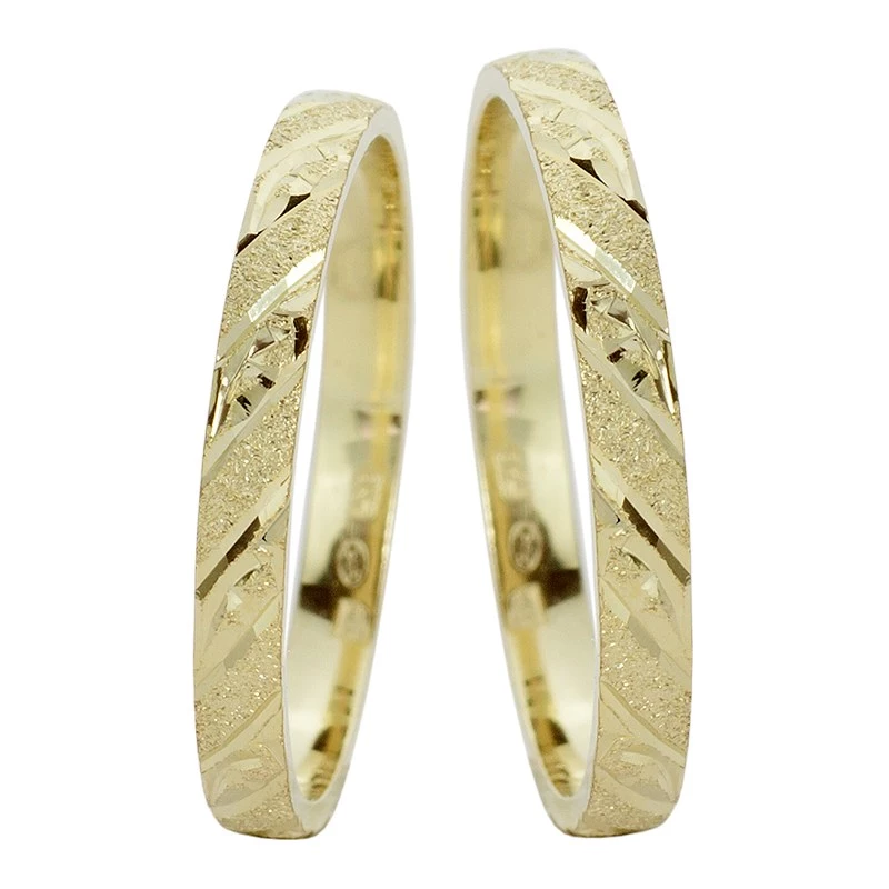 Snubní prsteny ze žlutého zlata zdobené jemnou rytinou. Prsteny o šíři 2,5 mm jsou jemnější a díky úzké šířce o nich na prstě ani nebudete vědět. Snubáky zdobí rytiny v abstraktním designu a kombinuje lesklý i matovaný povrch. Varianta pro muže i ženu je stejná. Sbalit popis