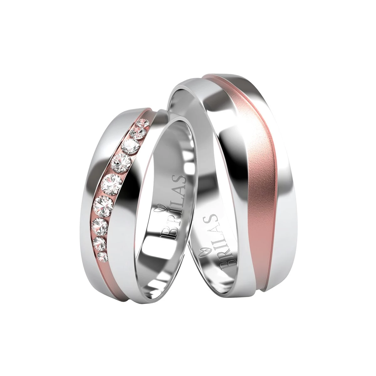 Elegantní snubní prsteny z bílého a červeného zlata, které patří mezi nejkrásnější v naší nabídce. Volbu těchto prstenů můžeme jen doporučit. Dominantu tvoří kamenová linie ladně umístěná v dámském prstenu. Celkem na prstenu naleznete 9 kamenů. Vybrat si můžete zirkon, přírodní diamant v kvalitě Si nebo laboratorní diamant, který je laboratorně vytvořený diamant, jehož optické, chemické a fyzikální vlastnosti jsou naprosto totožné s klasickým diamantem. Disponuje tedy stejnou krásou jako vytěžené diamanty. Diamant je kvality VS a barvy E,F. Velikost kamenů začíná na skvělých 2 mm a končí na 1,25 mm. Šíře prstenů je 5 mm. Sbalit popis