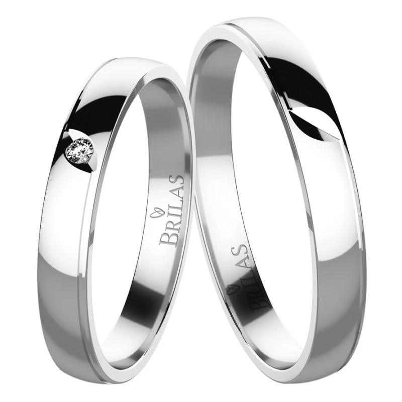 Jednoduché snubní prsteny ze stříbra jsou široké 3 mm, Prsteny jsou celé v lesku. Dámský prsten je osazen zirkonem o velikosti 1,3 mm, který je vsazen ve vyrytém lůžku. Vyryté lůžko zdobí oba prsteny, a stejně tak oba prsteny zdobí lesklé linky na krajích prstenů. Sbalit popis