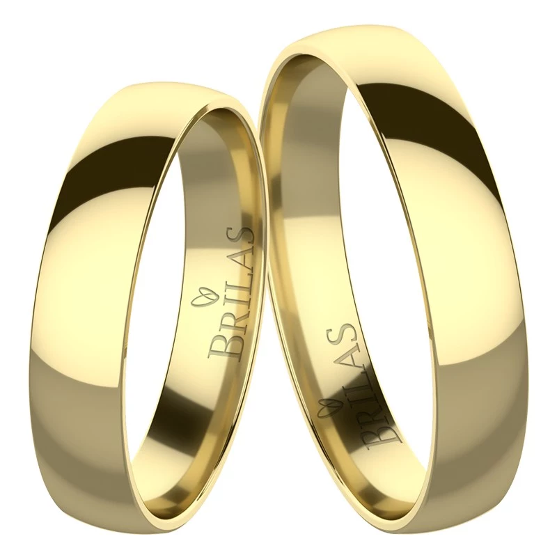 Tyto jednoduché elegantní prsteny ve žlutém zlatě mají šíři 3,5 mm. Prsteny jsou pro páry, kteří volí jednoduchost a eleganci. Snubáčky jsou v lesklé povrchové úpravě. Prsten pro nevěstu je také bez kamenů. Sbalit popis
