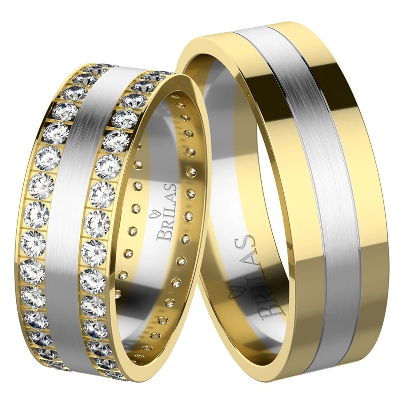Pokud si přejete, aby váš den byl naprosto dokonalý je třeba zvolit i dokonalé snubáčky. Zvolte tedy snubní prsteny, které nádherně doplní vaši dvojici. 6 mm prsteny s názvem Bret budou na vašich rukou rozhodně nepřehlédnutelné. Okraje těchto prstenů jsou lesklé ze žlutého zlata, středová linka pak provedena v matu ve zlatě bílém. Dámský prsten je navíc v lesklých částech ozdoben po celém obvodu zirkony, brilianty či laboratorními brilianty o velikosti 1,5 mm. Prsteny, které lépe než kterékoli jiné skvěle podtrhnout vaši lásku a vytvoří k sobě pevné pouto. Sbalit popis