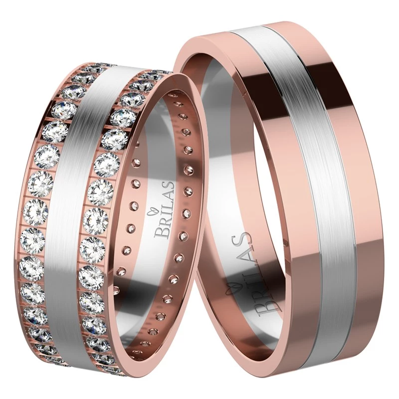 Pokud si přejete, aby váš den byl naprosto dokonalý je třeba zvolit i dokonalé snubáčky. Zvolte tedy snubní prsteny, které nádherně doplní vaši dvojici. 6 mm prsteny s názvem Bret budou na vašich rukou rozhodně nepřehlédnutelné. Okraje těchto prstenů jsou lesklé z červeného zlata, středová linka pak provedena v matu ve zlatě bílém. Dámský prsten je navíc v lesklých částech ozdoben po celém obvodu zirkony, brilianty či laboratorními brilianty o velikosti 1,5 mm. Prsteny, které lépe než kterékoli jiné skvěle podtrhnout vaši lásku a vytvoří k sobě pevné pouto. Sbalit popis
