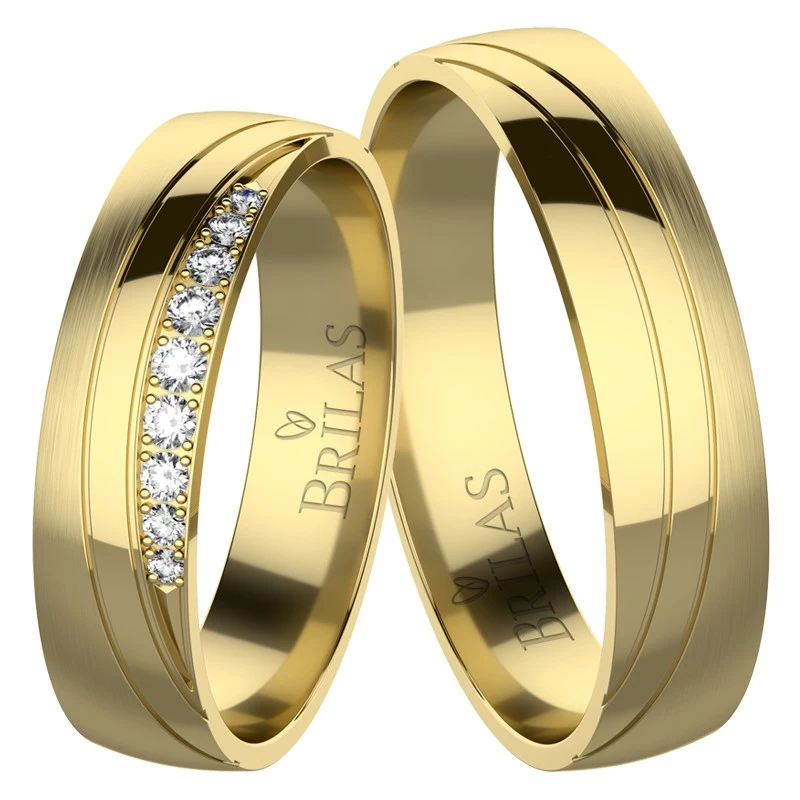 Prsteny, které bezpochyby popíší spojení dvou životů v jeden společný. Snubní prsteny Destini rozhodně nepatří mezi nijak obyčejné kousky. Krásné snubáčky v šíři 4,6 mm mají jak lesklou, tak matnou povrchovou úpravu. Dámský prsten zdobí 9 překrásných kamenů, které dámskému prsten dodávají nádherný lesk. Dáma se poté může rozhodnout, zda si zvolí zirkony, brilianty nebo laboratorní brilianty. Originální prsteny, které s vámi budou sdílet vše, co vás ve společném životě potká. Sbalit popis