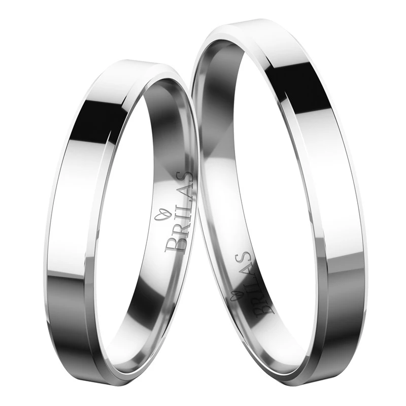 Prsteny široké 3,5 mm mají lesklý povrch a zdobeny jsou pouze jemným zkosením hran. Varianta pro ženicha a nevěstu je stejná, bez kamínků. Pokud si budete přát, je možné dámský prsten osadit zirkonem nebo briliantem. Tyto prstýnky jsou určeny všem, kteří chtějí jednoduché prstýnky za příjemnou cenu. Sbalit popis