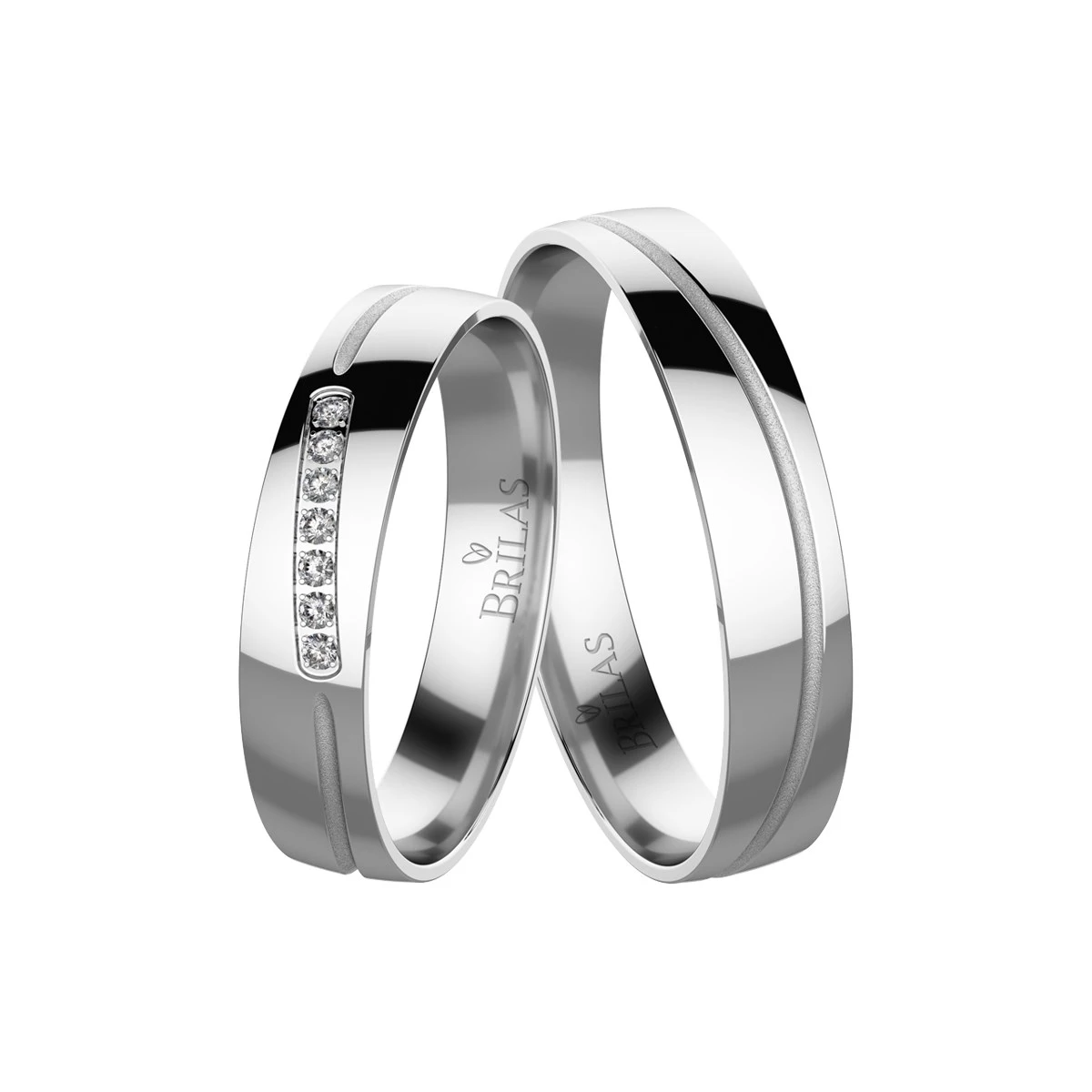 Snubní prsteny, které budou zdobit vaše ruce by vám měli neustále připomínat váš nezapomenutelný den. Prsteny Niket jsou jemné, krásné a vyráběny v šíři 4 mm. Oba prsteny jsou v lesku a zdobí je matná vlnovka po celém obvodu. V dámském prstenu bude nevěsta nosit 7 kamenů o velikosti 1 mm a volit může mezi variantou zirkonů, briliantů či laboratorních briliantů (0,035 ct.) Sbalit popis