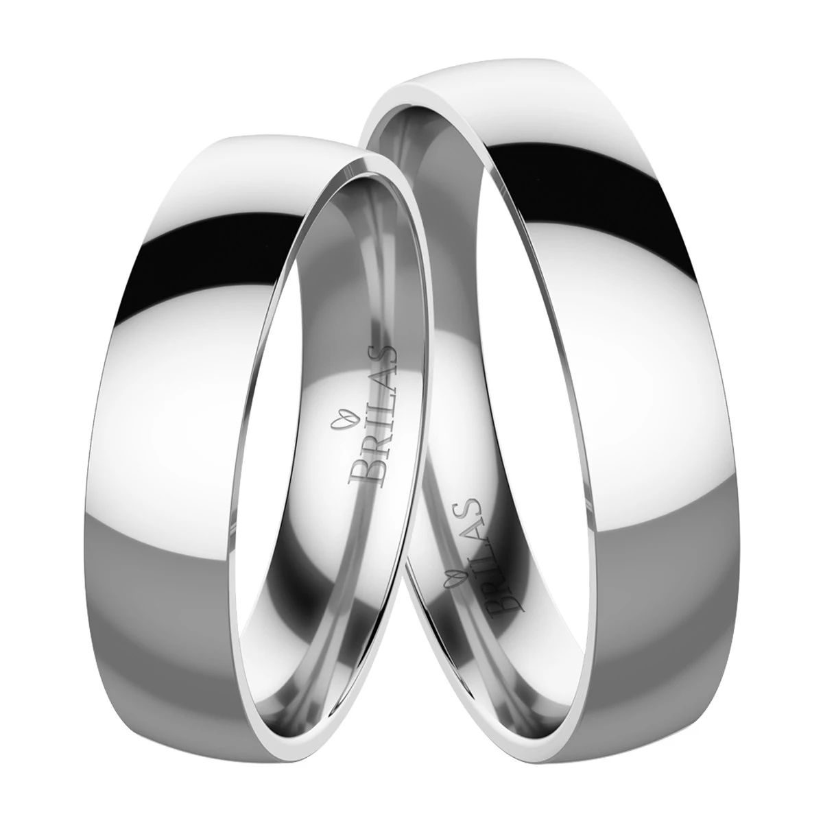 Jednoduché klasické snubní prsteny vyrobené z bílého zlata. Jejich povrch je celý lesklý bez zdobení. Dámský model je shodný jako pánský, bez kamenů. Šíře je 4,5 mm a model je navržen tak, aby byl při nošení co nejpohodlnější. Sbalit popis
