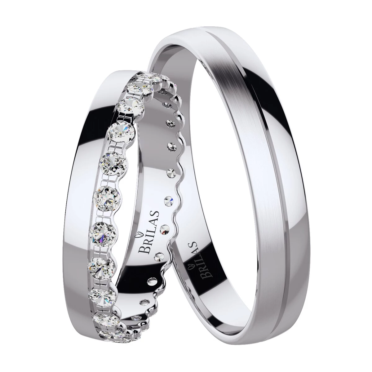 Krásné prsteny Fiera se vyznačují odlišností dámského prstene. Ten má zdobný povrch, nepravidelný tvar a je osazen cca 25ti zirkony, brilianty laboratorního původu či brilianty o velikosti 1,75 mm (0,575 ct.). Jeho jemný vzhled připomíná korunku. Pánský prsten je ve formě hladké obroučky, rozdělené linkou, kde polovina povrchu je lesklá a druhá polovina matná. Sbalit popis