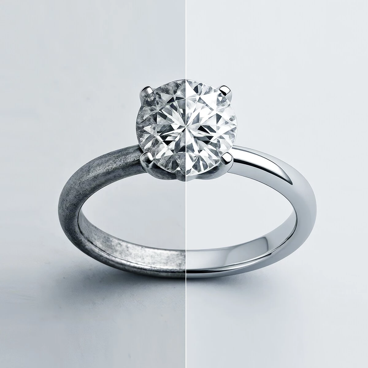 Kompletnı́ renovace zásnubnı́ho prstene ze všech materiálů, zahrnujı́cı́ kromě služby ČIŠTĚNÍ+ i opravu vad a obnovu povrchů. Ty uvedeme do původnı́ho stavu, bı́lé zlato a stříbro navı́c galvanicky potáhneme rhodiem. Za zlomek ceny nového prstene, tak budete mı́t původnı́ prsten "jako nový".