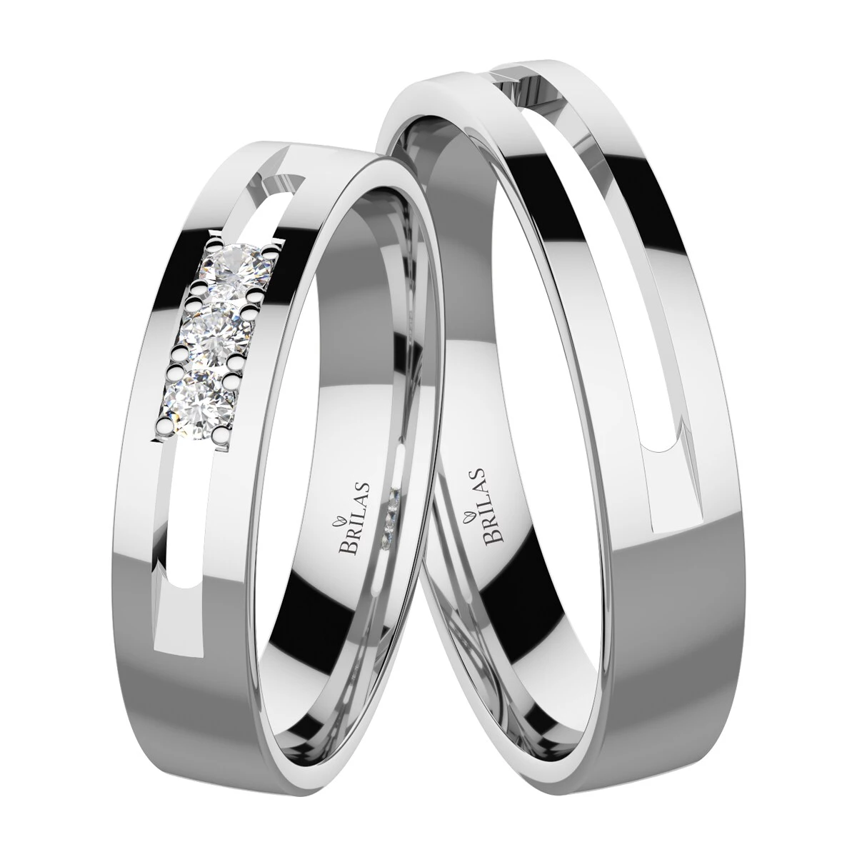 Lesklé snubní prsteny ve 3,85 mm šíři ze třemi kameny 1,75mm uchycenými do drážky, které prsteny odlišuje od průměrných prstenů. Vybrat si můžete zirkon, přírodní diamant v kvalitě Si nebo laboratorní diamant, který je laboratorně vytvořený diamant, jehož optické, chemické a fyzikální vlastnosti jsou naprosto totožné s klasickým diamantem. Disponuje tedy stejnou krásou jako vytěžené diamanty. Diamant je kvality VS a barvy E,F. Originální vzor je vyroben z bílého zlata, ale nic Vám nebrání volit klasické žluté nebo moderní červené zlato. Sbalit popis