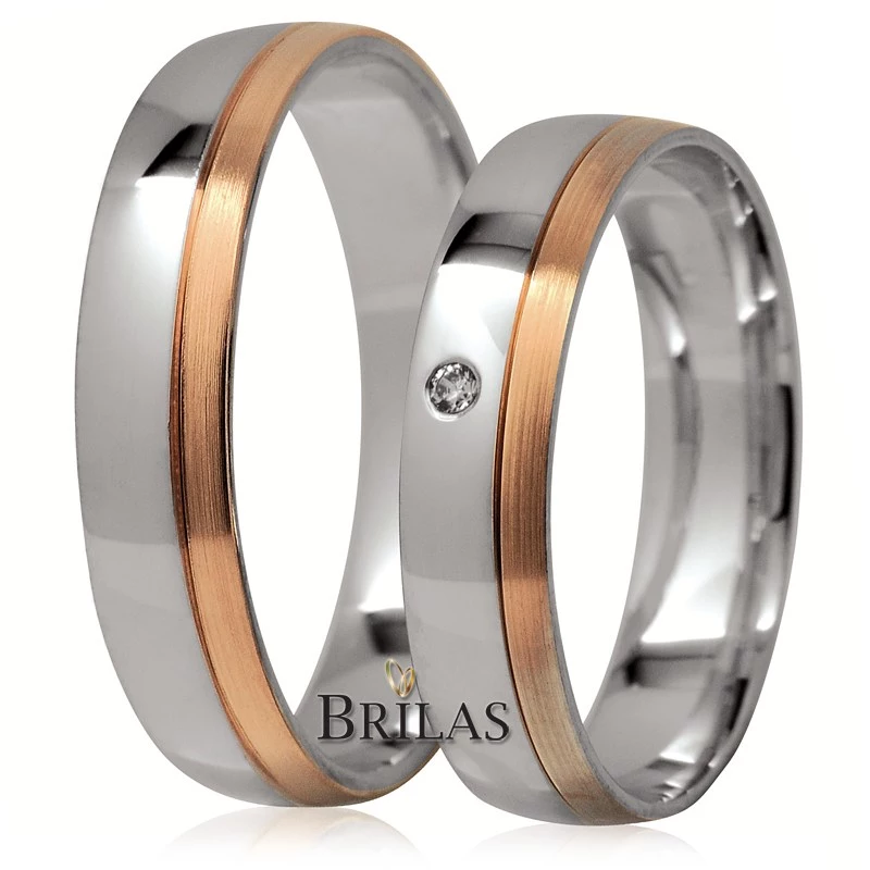 Kombinované snubní prsteny, které se určitě zalíbí všem, kteří preferují střídmost a přitom mají rádi moderní trendy. Šíře prstenů 4,6 mm, dámský má jeden kámen o průměru 1,5 mm. Vybrat si můžete zirkon, přírodní diamant v kvalitě Si nebo laboratorní diamant, který je laboratorně vytvořený diamant, jehož optické, chemické a fyzikální vlastnosti jsou naprosto totožné s klasickým diamantem. Disponuje tedy stejnou krásou jako vytěžené diamanty. Diamant je kvality VS a barvy E,F. Zcela bez omezení můžete volit barevné kombinace zlata a taktéž povrchovou úpravu. Sbalit popis