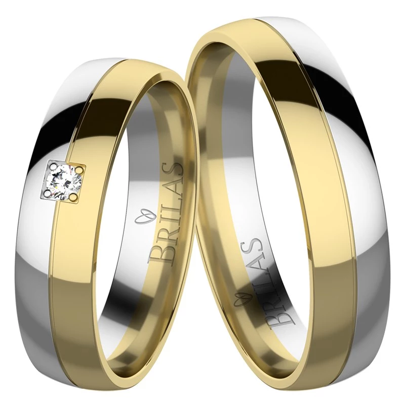 Zlaté snubní prsteny v kombinaci bílého a žlutého zlata. Barevná kombinace je půlena vyrytou linkou. Dámský prsten je zdoben čtvercovým kamenem o rozměru 2 mm. Vybrat si můžete zirkon, přírodní diamant v kvalitě Si nebo laboratorní diamant, který je laboratorně vytvořený diamant, jehož optické, chemické a fyzikální vlastnosti jsou naprosto totožné s klasickým diamantem. Disponuje tedy stejnou krásou jako vytěžené diamanty. Diamant je kvality VS a barvy E,F. Snubáky mají šířku 4,85 mm. Sbalit popis