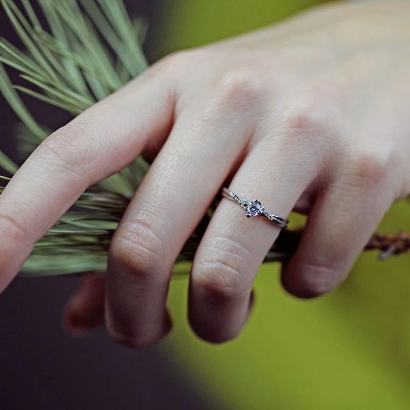 Tento půvabný zásnubní prstýnek má netradiční uchycení centrálního kamene o velikosti 4 mm. Prsten je osazen dalšími šesti kameny průměru 1 mm. Vybrat si můžete přírodní diamanty v kvalitě Si nebo laboratorní diamanty, které jsou laboratorně vytvořené diamanty, jejichž optické, chemické a fyzikální vlastnosti jsou naprosto totožné s klasickým diamantem. Disponují tedy stejnou krásou jako vytěžené diamanty. Diamanty jsou kvality VS a barvy E/F a jejich celková hmotnost je 0,30 ct. Prsten na ruce vypadá elegantně. Sbalit popis