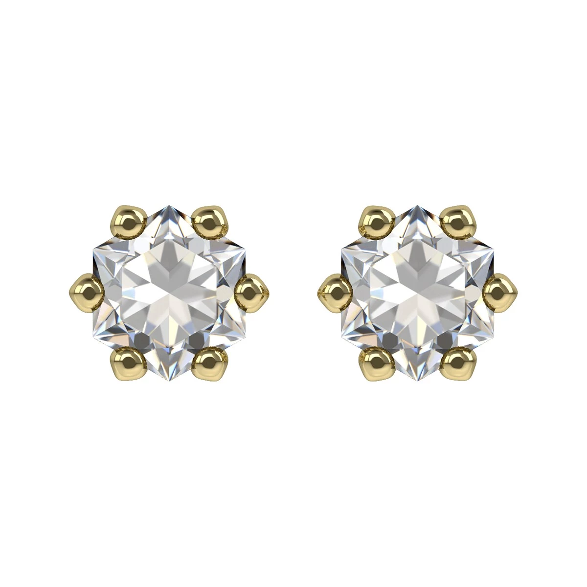 Velmi elegantní propracované náušnice pro dámy jsou vyrobeny ze žlutého zlata. Náušnice mají tvar skvěle doplňující zásnubáček Helena. Povrch šperku je lesklý a hladký, každá náušnice je osázena zirkonem o velikosti 4 mm. Váha náušnic je 1,4 g. Nádherné náušnice budou ozdobou každé ženy. Zapínání náušnic je na šroubek. Sbalit popis