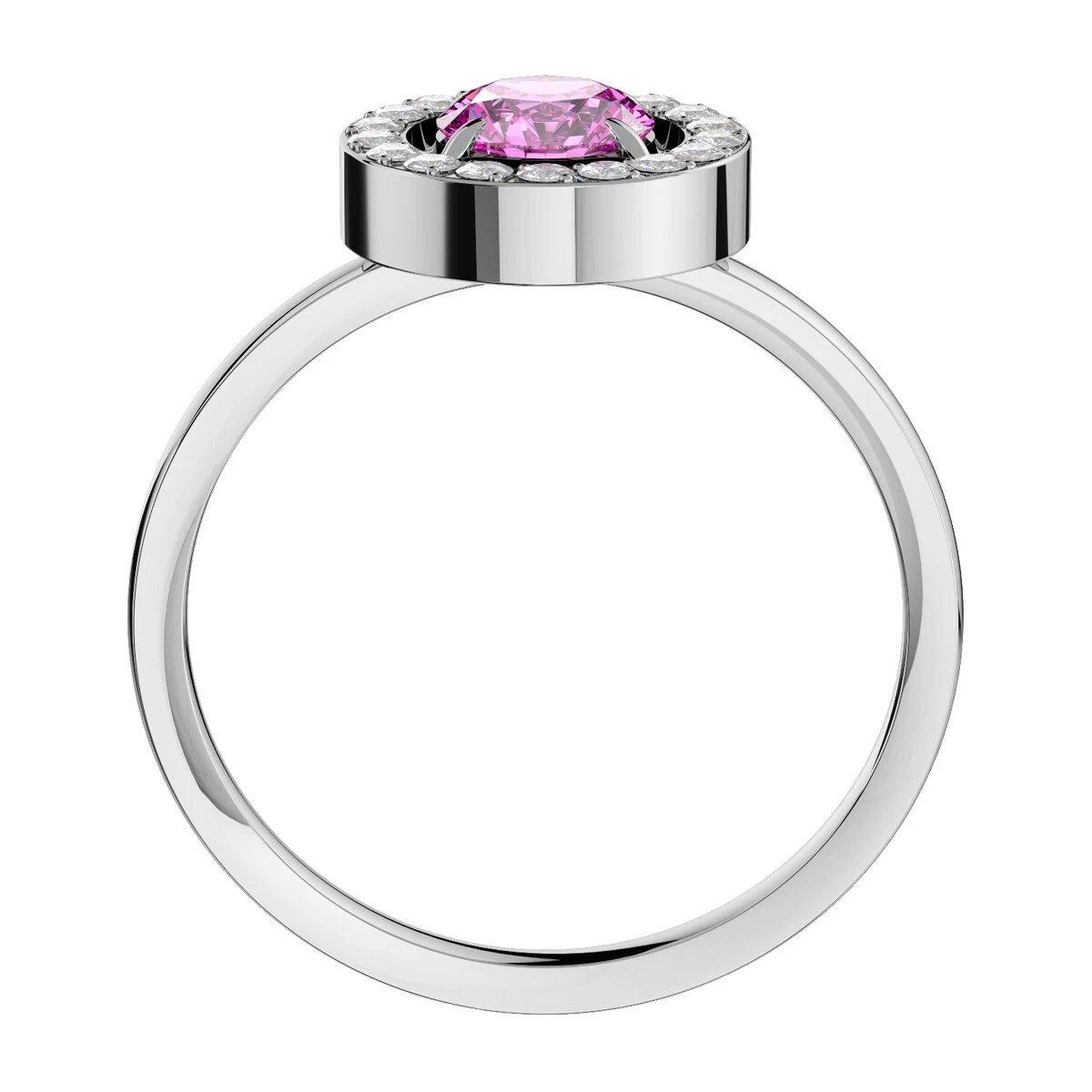 Zásnubní prsten Zafira je vyroben z chirurgické oceli. Tento zásnubáček je osazen zirkony, středový zirkon je růžové barvy. Centrální kámen je o velikosti 5 mm, kameny po obvodu pak měří 1,1 mm. Jestliže hledáte prsten, který je honosný a rozhodně zajímavý, je tento úžasný kousek jasnou volbou. Sbalit popis
