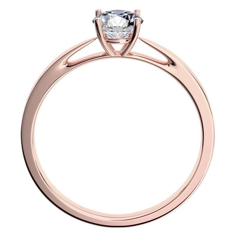 Nádherný zásnubní prsten vyroben z růžového zlata s jedním bílým safírem dominující celému prstenu. Kámen je ve velikosti 4 mm, 4,75 nebo 5 mm, to znamená, že bude na prstenu nepřehlédnutelným kouskem. Sbalit popis