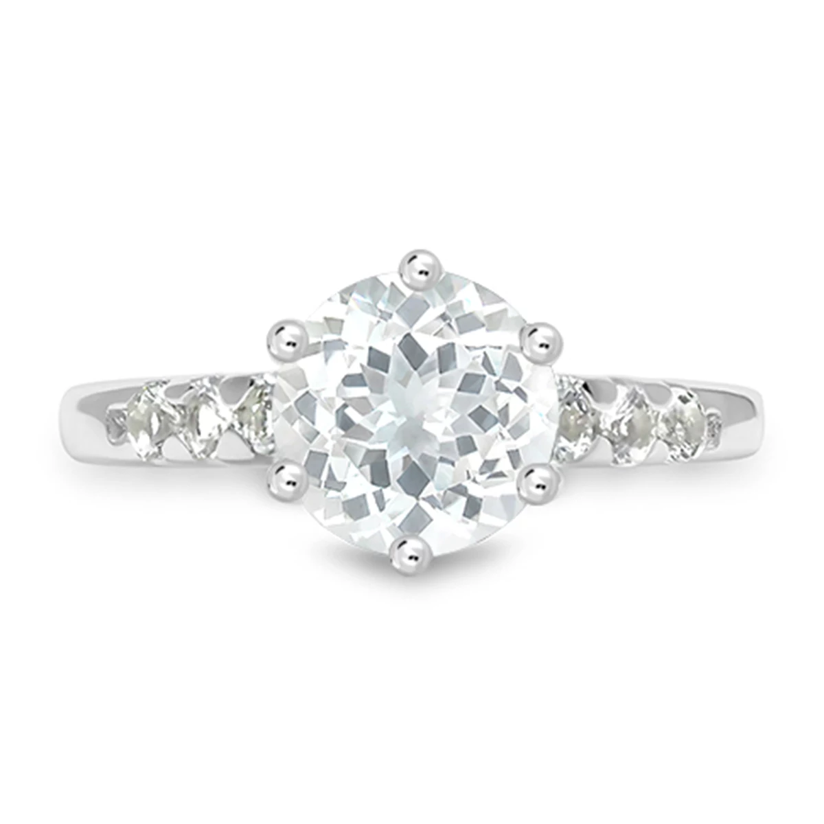 Nádherný stříbrný prsten s nepřehlédnutelným středovým kamenem a postranními kamínky, jehož bílé odlesky vás doslova okouzlí. Skvělá volba pro slavnostní příležitosti. Váha středového kamene je 1,78 ct., ostatní topazy mají 0,09 ct. a celková hmotnost šperku činí 2,5 g. Rozměr centrálního kamene je 8x8 mm. Sbalit popis