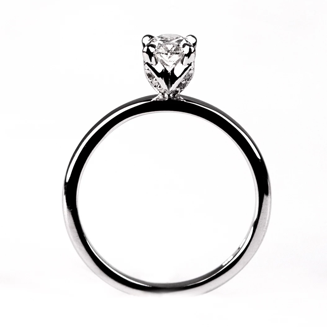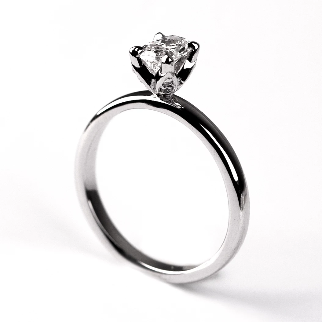 Tento jemný a zároveň výrazný zásnubní prsten je osazen centrálním kamenem v elegantním oválném brusu o velikosti 8×6 mm nebo ve velikosti 6×4 mm. K dokonalosti jej doplňuje 12 drobných briliantů o velikosti 1 mm, které jsou precizně zasazeny po stranách hlavního kamene a dodávají prstenu jiskřivý efekt z každého úhlu. Prsten je osazen kombinací přírodních (kvalita SI1 a barva G) a laboratorně (kvalita VS a barva F) vytvořených briliantů, přičemž celková hmotnost všech kamenů činí 1,34 ct. Tato kombinace přináší nejen krásu a kvalitu, ale také etický přístup k výběru drahokamů. Výsledkem je elegantní a moderní prsten, který je ideální volbou pro zásnuby ‑ jako symbol lásky, která je jedinečná a zářivá stejně jako tento šperk. Sbalit popis