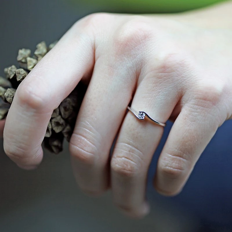 Zásnubní prstýnek z bílého zlata. Prsten se vyznačuje netradičním zpracováním a zirkonem o velikosti 3 mm. Výrazný kámen a moderní styl, to jsou přednosti tohoto modelu. Sbalit popis