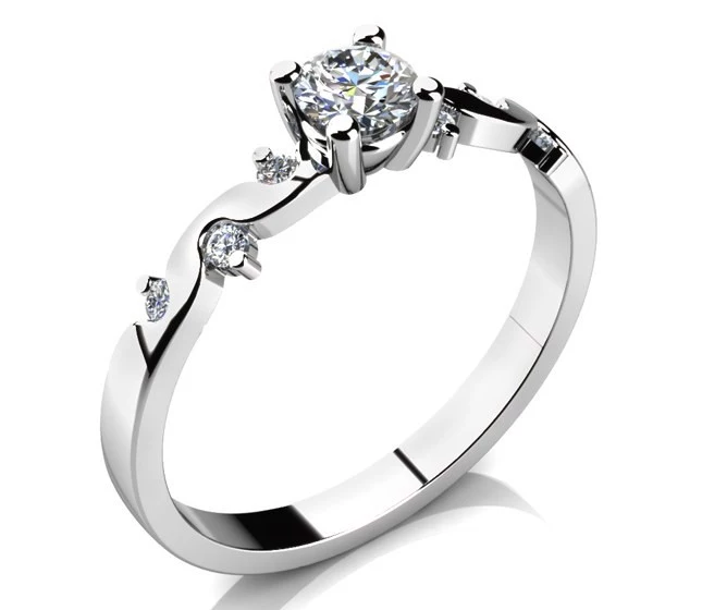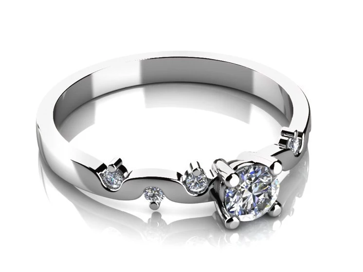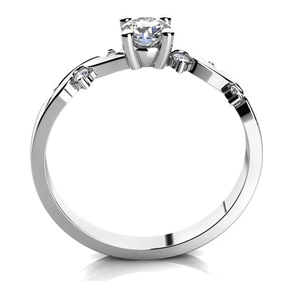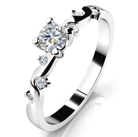 Jedinečný zásnubní prsten z bílého zlata v unikátním designu. Tento model vyniká svým moderním designem. Středový kámen je po stranách doplněn jedinečně osazenými brilianty. Můžete si vybrat z velikostí 3 mm, 3,4 mm a 3,75 mm. Jedná se o brilianty v kvalitě Si. Jejich celková hmotnost je 0,17 ct, 0,22 ct, 0,28 ct. Na obrázcích je zobrazen prsten se středovým kamenem průměru 3,75 mm. Okouzlující prsten, který oslní každou ženu. Doporučujeme. Sbalit popis