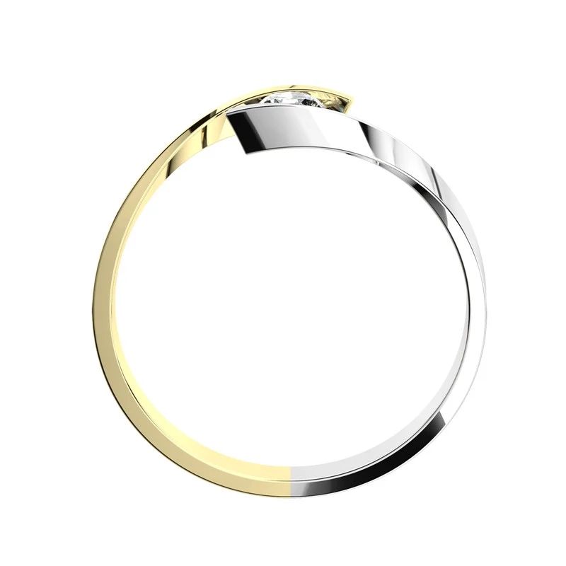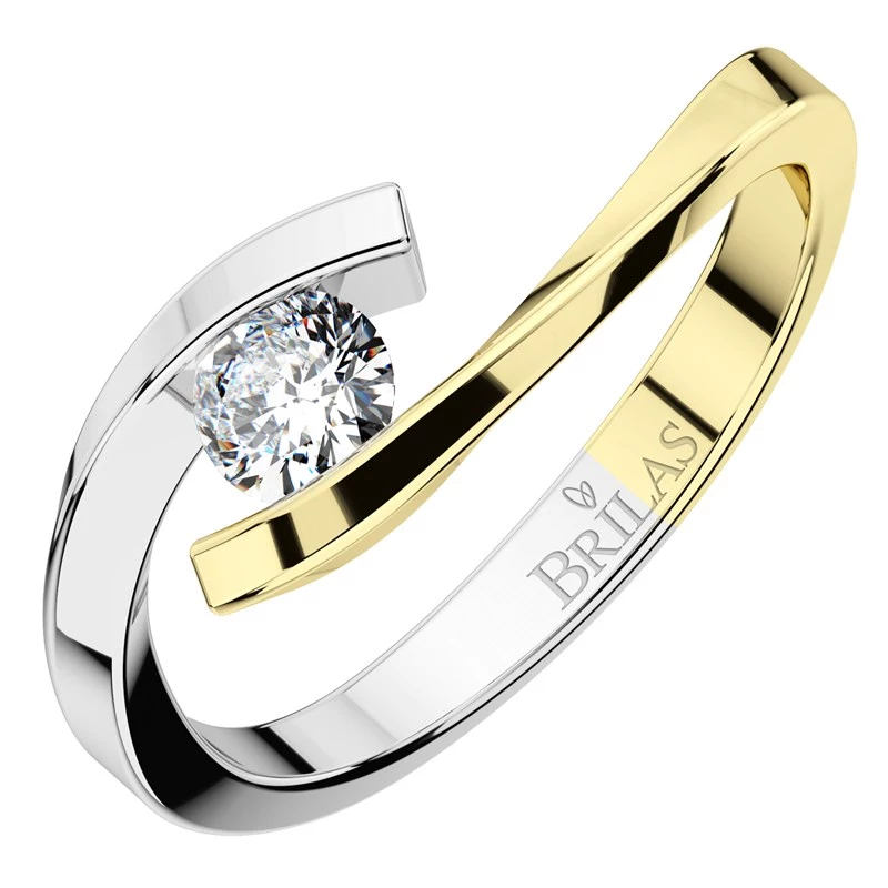 Zásnubní prstýnek zkrášluje dokonalý třpyt BRILIANTU v čistotě SI1/G o velikosti 3,4 mm (0,15 ct), který nelze přehlédnout. Tento model si můžete také zvolit i s briliantem v čistotě SI1/G o velikosti 3,6 mm (0,17 ct) za skvělou cenu. Prsten vyzařuje naprosto oslňující lesk. Zlatý prsten je netradičně zhotoven v barevné kombinaci žluté a bílé. Sbalit popis