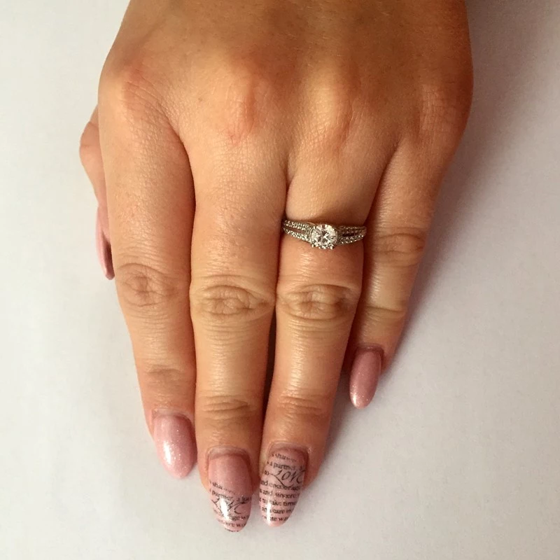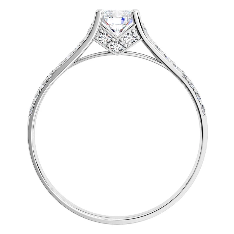 Tento masivní, ale velmi elegantní zásnubní prsten z bílého zlata je dokonalým kouskem pro žádost o ruku, která je pro každou ženu jedním z nejkrásnějších okamžiků v jejím životě. Pokud chcete vybrat originální kousek, je tento prsten tím správným. Zdobí jej centrální kámen o velikosti 5 mm a dalších 38 kamenů s rozměry 1,2 mm. Zaručujeme Vám, že Vaše drahá nemůže říci jinak než „ANO“. Sbalit popis