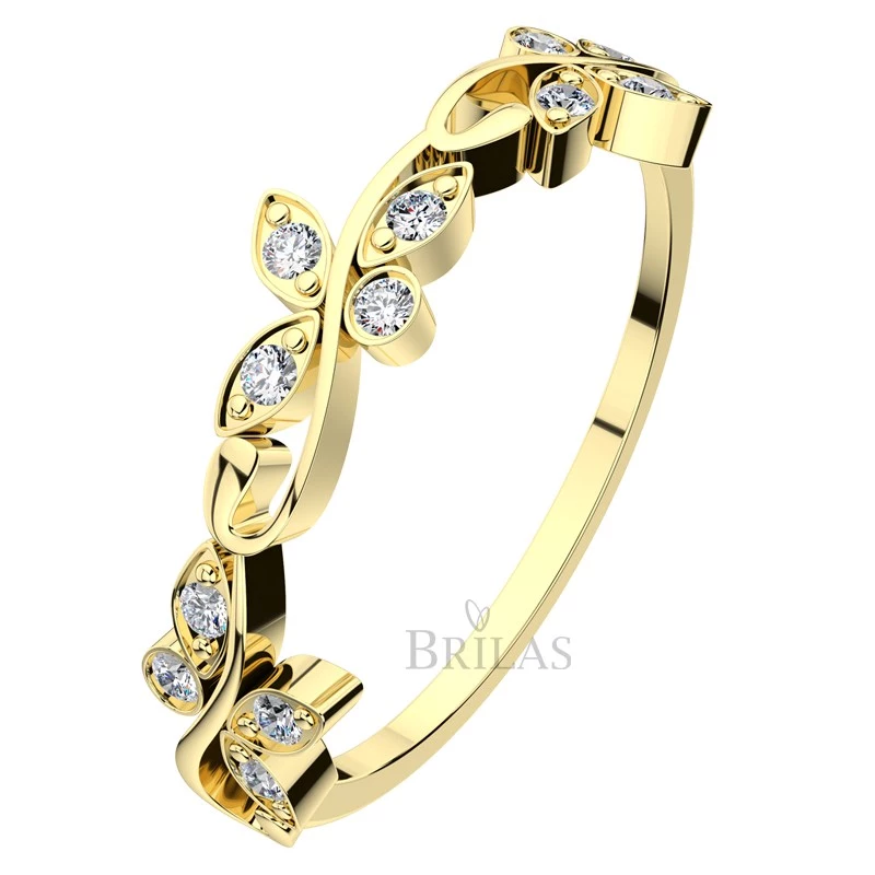 Originální zásnubní prstýnek ze žlutého zlata, jehož kouzlo tkví v netradičním zpracování a zasazení briliantů Si. Díky atypickému tvaru tohoto zásnubního prstene bude ruka Vaší milované zdobena originálním a jedinečným kouskem. Kameny s rozměry 9x1,3 mm a 3x1 mm jsou zasazeny do tvaru jakýchsi „motýlků“. Jsme si jisti, že se do tohoto prstene Vaše snoubenka ihned zamiluje. Vybrat si můžete přírodní diamanty v kvalitě Si nebo laboratorní diamanty, které jsou laboratorně vytvořené diamanty, jejichž optické, chemické a fyzikální vlastnosti jsou naprosto totožné s klasickými diamanty. Disponují tedy stejnou krásou jako vytěžené diamanty. Diamanty jsou kvality VS a barvy E/F. Sbalit popis