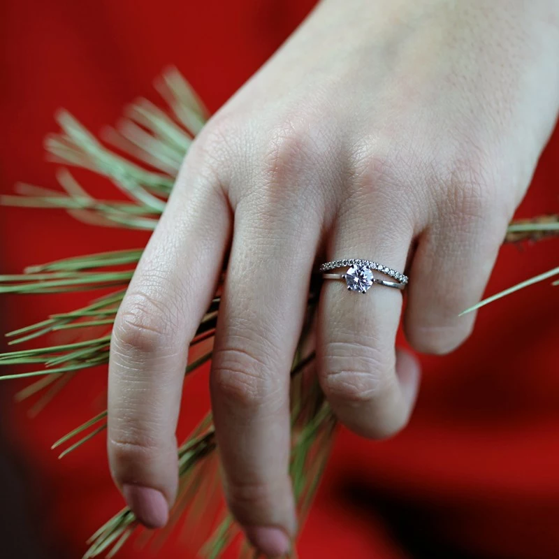 Nádherný zásnubní prsten, který zaujme každou ženu na první pohled, je vyroben z bílého zlata. Dominantou prstene je zirkon ve velikosti 6mm, který je doprovázen spodní linií drobnějších 18ti zirkonů ve velikosti 1,5mm. Třpyt prstene zaručeně zaujme i Vaši přítelkyni. Sbalit popis