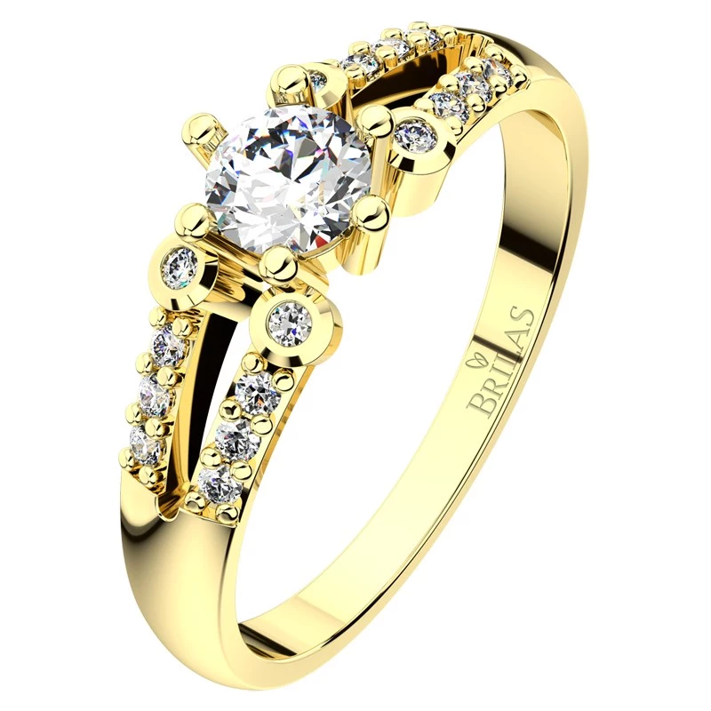 Výjimečný okamžik jako je žádost o ruku Vaší životní lásky si vyžaduje i výjimečný prsten. Proto bychom Vám rádi představili další horkou novinku a tou je prsten Berenika Gold. Netypický, avšak vznešený a nádherný zásnubní prsten ze žlutého zlata je tvořen dvěma řadami 12‑ti zirkonů, které spojuje centrální kámen o velikosti 4,5 mm, a který je navíc ještě zdoben 4 kulatými zirkony. Neváhejte a proměňte Vaši žádost v nezapomenutelnou. Sbalit popis