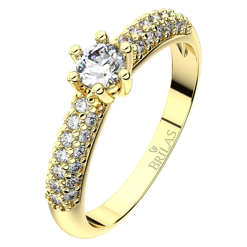 Jestliže pro svou drahou polovičku hledáte zásnubní prsten, se kterým bude naprosto nepřehlédnutelná, rádi bychom Vám doporučili tento prsten ze žlutého zlata s názvem Sněženka. Zásnubáčku dominuje 4 mm centrální kámen a po stranách ho zdobí dalších 38 briliantů o velikosti 1,2 mm zasazených hned vedle sebe. Díky nimž působí prsten ještě vznešeněji a honosněji. Celková hmotnost kamenů je 0,554 karátů. Sbalit popis