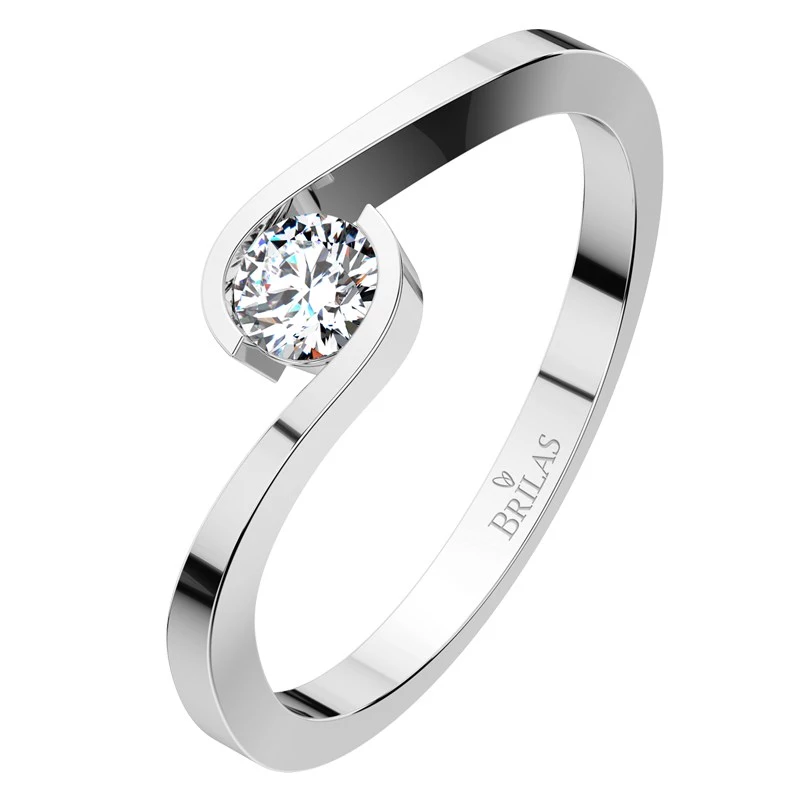 Zásnubní prstýnek z bílého zlata. Prsten se vyznačuje netradičním zpracováním a briliantem o velikosti 3,75 mm. Výrazný kámen a moderní styl, to jsou přednosti tohoto modelu. Hmotnost briliantu je 0,20 karátů. Sbalit popis