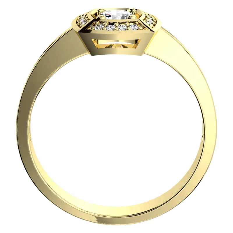 Luxusní kousek mezi nejnovějšími zásnubními prsteny pro ženy, které se nebojí svůj zásnubní prsten ukázat světu. Pro ženy milující honosné, grandiózní a ohromující věci. Prsten vyniká centrálním kamenem o velikosti 4 mm. Dále je po stranách zdoben 16 menšími brilianty. Ty jsou o velikosti 1 mm, díky kterým dostává prsten neodolatelný jas a třpyt. Jejich celková hmotnost je 0,34 ct. S tímto prstenem bude Vaše budoucí žena nepřehlédnutelná. Sbalit popis