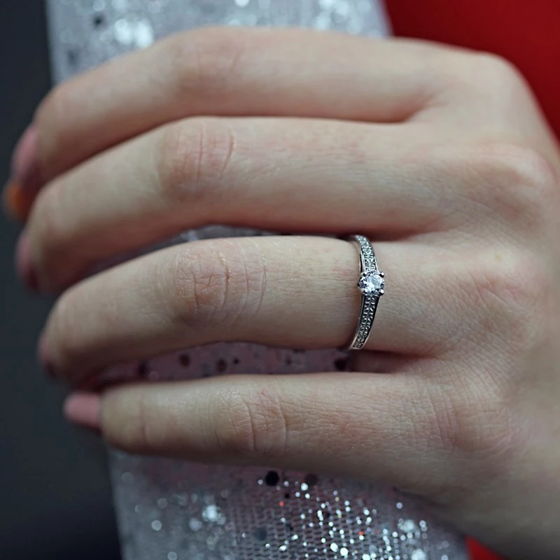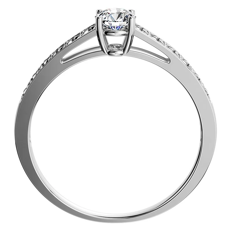 Klasika s nádechem luxusu, to je zásnubní prsten Milena z bílého zlata. Jemný zásnubní prsten který ale jen tak někdo nepřehlédne. Prstenu dominuje centrální zirkon o velikosti 4 mm. Po stranách je ozdoben tak, že to vypadá, jako by z každé strany bylo zasazeno ještě několik kamenů. To prstenu dodává ještě větší eleganci a krásu. Neváhejte a zvolte nádherný kousek pro nádhernou ženu. Sbalit popis