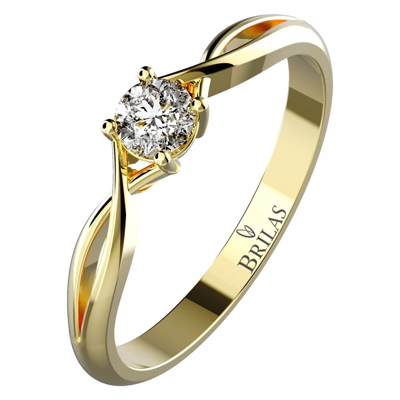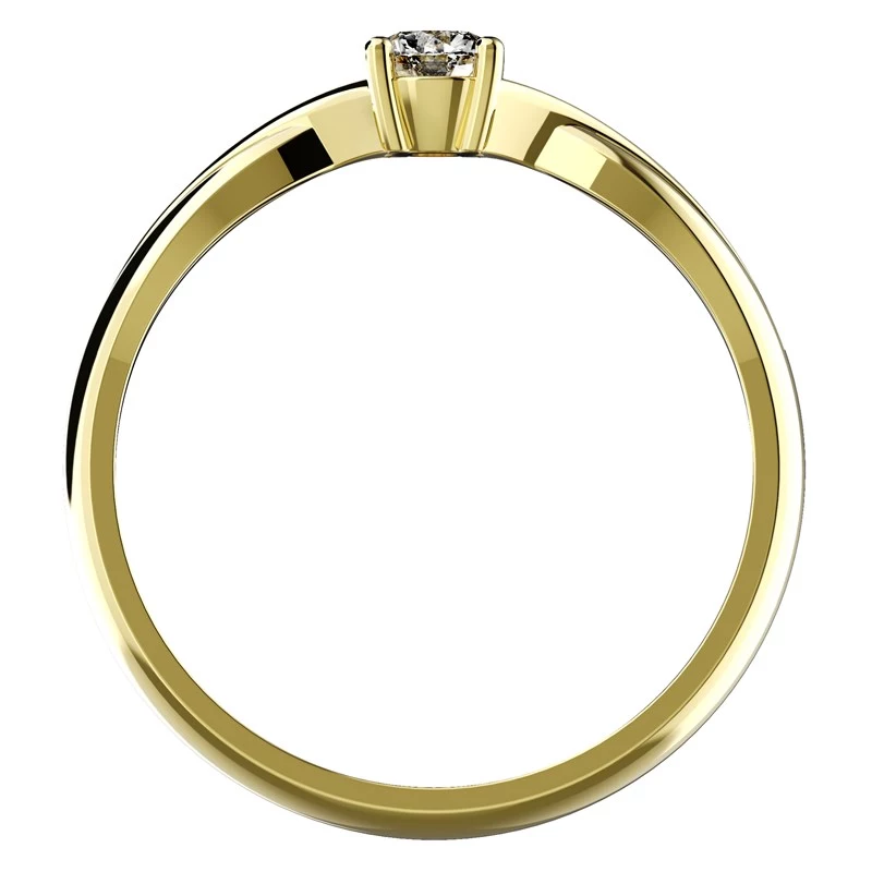 Krásný propletený zásnubní prsten ze žlutého zlata. Můžete si vybrat, zda prsten bude zdoben jedním centrálním briliantem o velikosti 3,75 mm (0,21 ct.) nebo 5 mm (0,46 ct.). Prsten je na ruce opravdu ozdobou. Sbalit popis