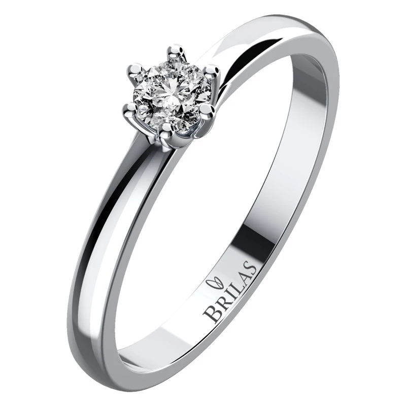 Zásnubní prsten z bílého zlata, který je zdoben jedním centrálním briliantem o velikosti 3,5 mm. Jednoduchost a originalita v jednom. Sbalit popis