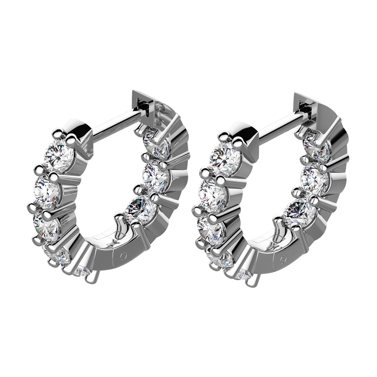 Doplňte svůj ležérní nebo elegantní outfit dokonalým šperkem. Nadčasové kruhové náušnice ze stříbra s názvem Debora představují jemnost a čistotu. Kruhové náušnice jsou 1,5 cm vysoké a 0,3 cm široké.Jejich váha je 3,70g. Každou z náušnic neobvykle zdobí 8 zářivých zirkonů o velikosti 3 mm. Jemný design, který perfektně podtrhne styl každé ženy. Sbalit popis